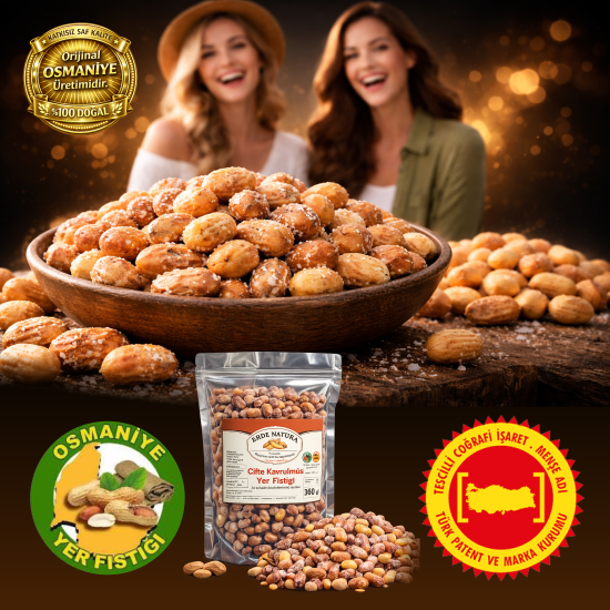 Coğrafi işaretli meşhur Osmaniye fıstığı; iri taneli, yoğun aromalı ve yüksek yağ oranıyla öne çıkar. %100 doğal, taze ve katkısız yer fıstığını güvenle keşfedin.