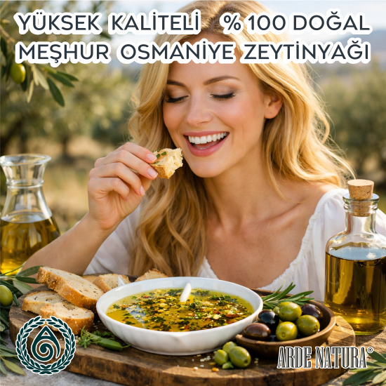 Akdeniz Bölgesinin doğusunda konuşlanan Osmaniye’mizin zeytin tarımına uygun coğrafya ve ikliminde iyi tarım uygulamaları ile yetiştirilen zeytin meyvesinin en iyi zeytinyağını elde etmek maksadıyla günün erken saatlerinde özenle toplanıp birkaç saat içinde standartlara uygun olarak soğuk olarak sıkılmasıyla elde edilen ve sıkımdan ambalajlanma anına kadar laboratuvar testleri yapılan, POLİFENOL ZENGİNİ ARDE NATURA NATÜREL SIZMA ZEYTİNYAĞI bütün saflığıyla sofranızda.