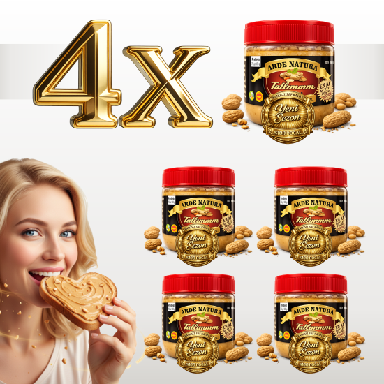 4 adet Naturel (ŞEKERLİ) Fıstık Ezmesi